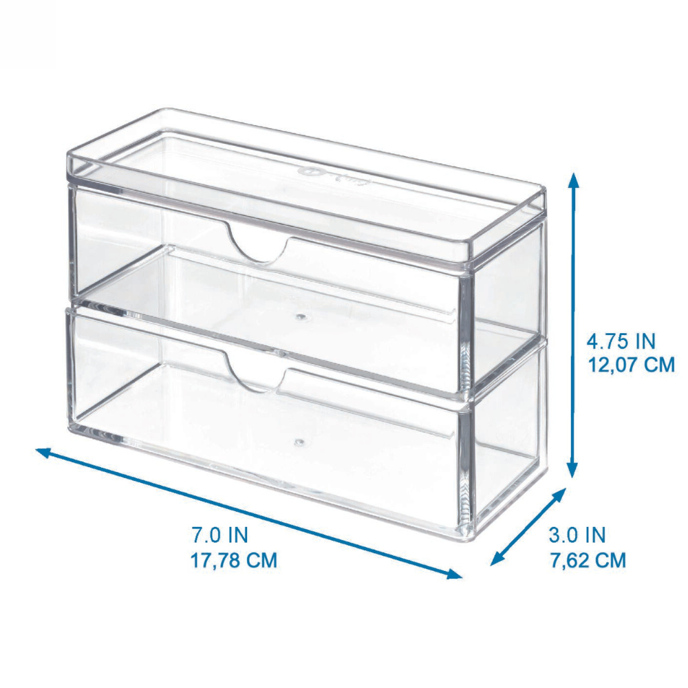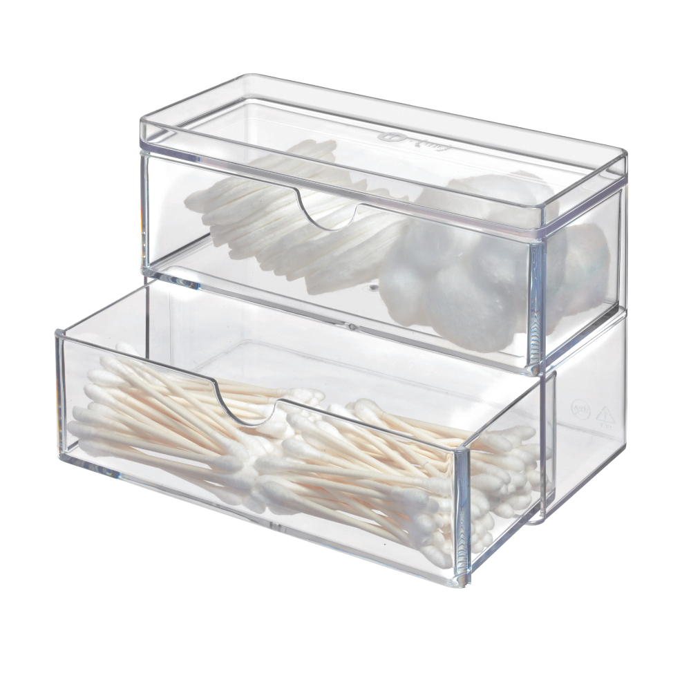 L'organisateur de cosmétiques HOME EDIT KLAR est idéal pour le stockage peu encombrant d'articles cosmétiques tels que les cotons-tiges, les tampons et le maquillage. Il dispose de deux tiroirs et est empilable. Grâce à son design étroit, il s'adapte parfaitement aux étagères étroites et aux armoires à pharmacie.