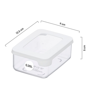 12.5x9x10cm (800ml) / 12.5x9x20cm (1600ml) / 12.5x9x28cm (2250ml) / 18x12.5x20cm (3500ml) (LxlxH)
